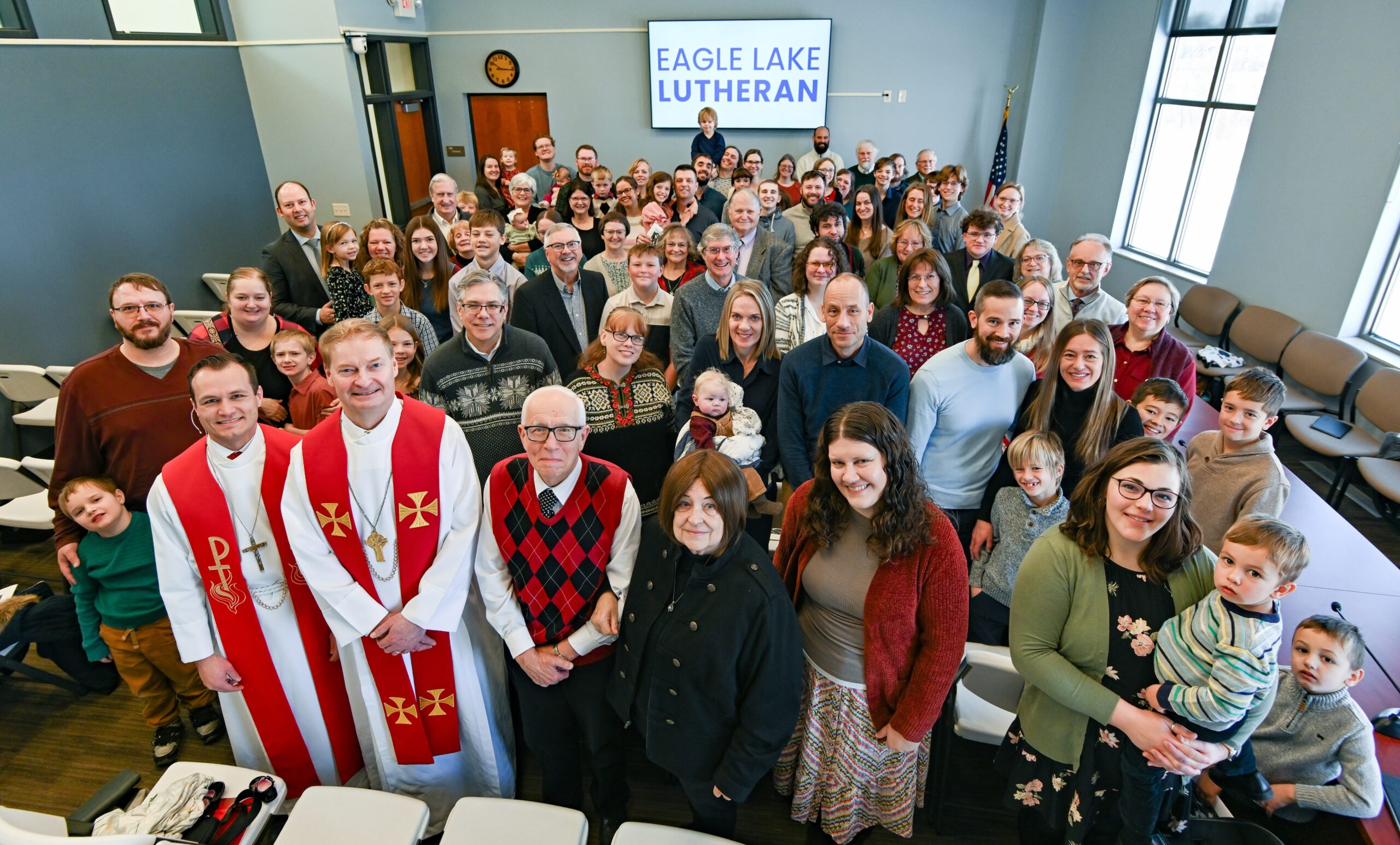 Eagle Lake Lutheran Church celebrated her Charter Sunday on December 7. The congregation is our synod’s newest home mission. Pastor Patrick Ernst served as liturgist for the service, and Rev. Brad Kerkow (ELS Evangelism and Missions Counselor) preached the sermon. Following the service, a photo was taken, an initial voters meeting was held to adopt the church constitution and bylaws and to elect the first officers, ceremonial charter documents were signed, and cake was served. The “charter window” for individuals to join the new congregation remained open until December 31.